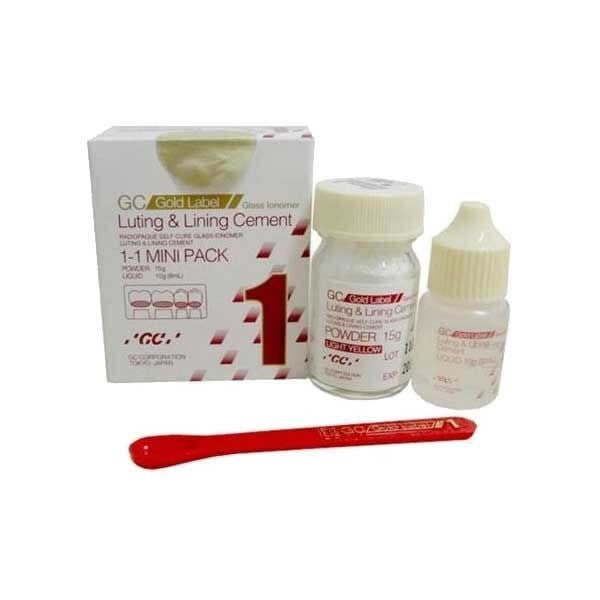 ESTUCHE CON 15 GRAMOS DE POLVO Y 8 ML DE LIQUIDO DE IONOMERO DE VIDRIO PARA CEMENTACION FUJI MINI PACK DE MARCA GC