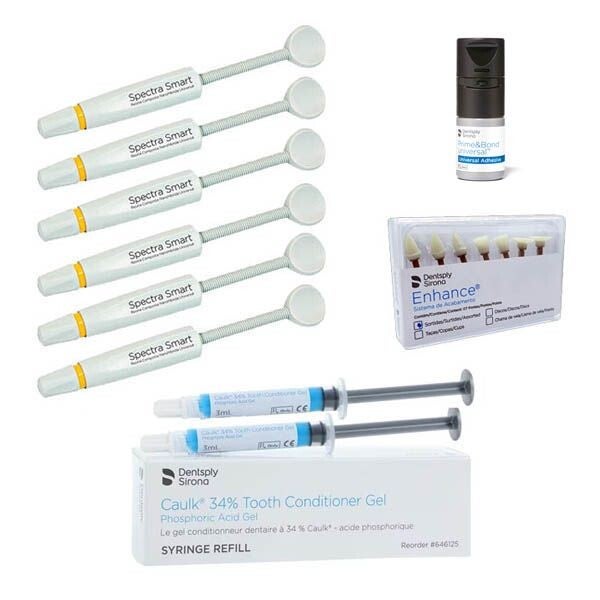 KIT DE 6 JERINGAS DE RESINA COMPUESTA SPECTRA SMART ,1 ADHESIVO DE 4 ML , 2 JERINGAS DE GRABADOR Y UN ESTUCHE DE PULIDORES ENHANCE MARCA DENTSPLY
